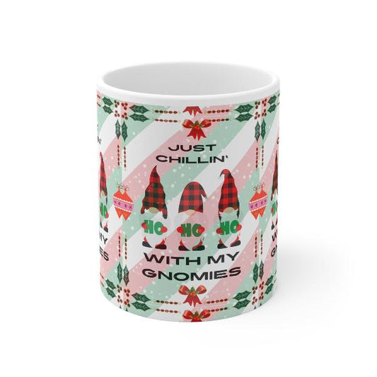 Just Chillin' With My Gnomies White Ceramic Mug, 11oz